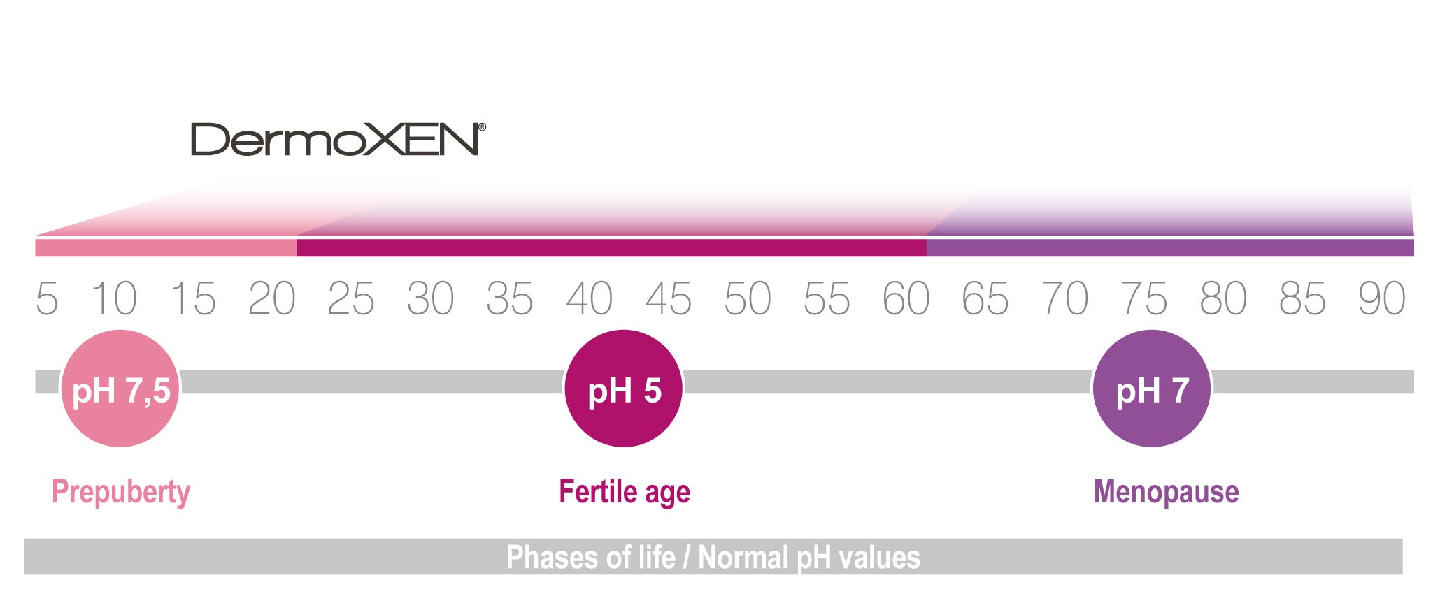 In women, vaginal ecosystem is naturally protected by Döderlein’s bacilli, a family of “friendly” bacteria that live in the vagina and produce lactic acid, a substance that creates a hostile environment to the attack of harmful bacteria. In this process, the role of the oestrogen is fundamental. It stimulates the production of glycogen, used by Döderlein bacilli to produce lactic acid. The level of oestrogen changes according to a woman’s period of life, therefore the level of acidity of the vaginal environment also changes. Since acidity is measured by pH values, this means that a woman has different vaginal pH values according to her age.